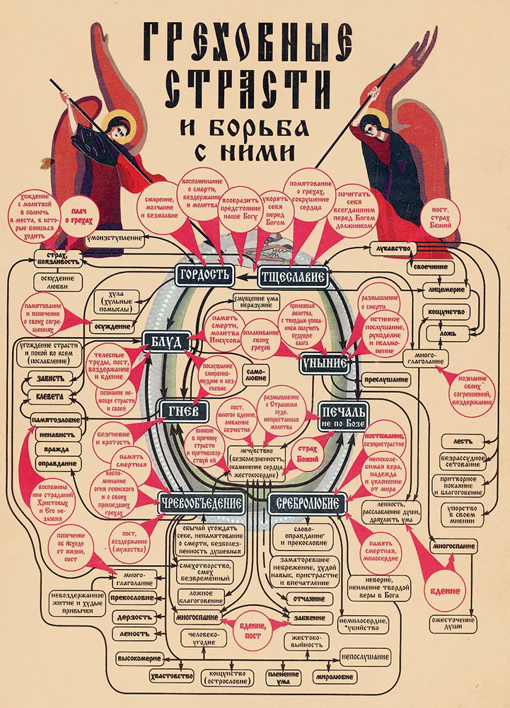На сайте «Студии Лебедева» аккурат первого числа выложили т. н. православную инфографику. Ну, кто-то нарисовал и прислал на оценку профи. Я попробовал разобраться, чё как, и сдался. Но, чувствуется, грехи штука сложная. Вот миролюбие например. Или острословие. Или заматоревшее небрежение. А то и упорство в своём мнении. Может, вы разберётесь?