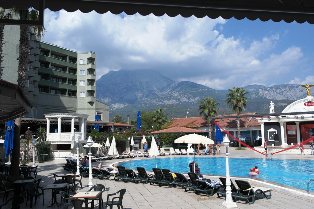 Добрый день, уважаемые листатели этой днявки. Я вернулся из отпуска (Анталия, Текирова), попробую теперь фотоотчитаться о проделанном отдыхе.☺ Коротко текстом. Отдых в Турции после заморозки отношений стал несколько беднее. Видно, что многие позакрывались, кто-то ужался, кто-то придумал, что вместо турецкого персонала дешевле и "русскоориентированнее" набрать работников из бывш. союзных республик. Но это всё — если вглядываться. Люди едут в Турцию за морем, солнцем, всяким таким. Ну-с, погнали 29 фото. С морем всё понятно, что его фотографировать... ![]() С балкона номера вид открывался на горы: ![]() ![]() И на кусочек турецкого маркетинга. Обратите внимание: на газоне устроен манеж для кроликов. Кроликов трое, они забавные. ![]() Гору видно даже от бассейна: ![]() Бассейн — сердце любого отеля. Здесь по вечерам бывают шоу: ![]() С вирусом Коксаки, широко разрекламированном нашими СМИ, в нашем отеле была жопа. То есть, нуль. Но и хлорки в бассейн не жалели. ![]() Найдите на фото русский дух: ![]() Пришёл с пляжа? Облей ноги! ![]() Любимые надписи: ![]() ![]() ![]() ![]() Главное в отельном отдыхе — чередовать шведский стол с активными играми! Висящий в воздухе толстячок — это я. ![]() Честно говоря, наполучал микротравм на полгода вперёд. Под песком иногда скрываются жесточайшие колтуны чуть ли не бетона. Зато отель, как принято, зелёный. Из всего богатства цветов, лимонов и прочей радости выбрал три фото: ![]() ![]() ![]() По пути на пляж встречаются раритеты. Рено девяточка: ![]() Раритеты там не гниют. Даже завидно!☺ Три ночных фото: ![]() ![]() ![]() Это по пути на экскурсию в Памуккале. Луна на нотном стане, ага. ![]() Рыба-мангал была, вот рыбы-ложки: ![]() А это — украинская якутка, видимо: ![]() Растут оливки, растут гранаты: ![]() ![]() Вдруг откуда ни возьмись маленький... ![]() Это Памуккале, горы окрасились в белое, когда после очередного землетрясения стали бить минеральные источники. Они и окрасили отложениями кальция часть склонов. ![]() Древний театр Иераполиса (Хиерополиса): ![]() Пожалуй, я про Памуккале и Иераполь позже залужу отдельно. А пока хватит.☺ |